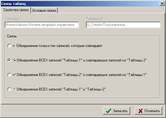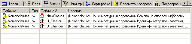 данных) и условия связи, введенные на закладке Фильтр.