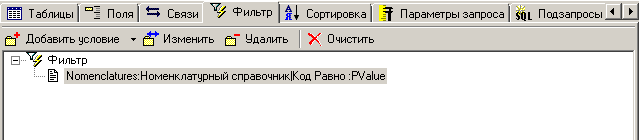 в запросе. Управление условиями фильтрации возможно как с помощью панели