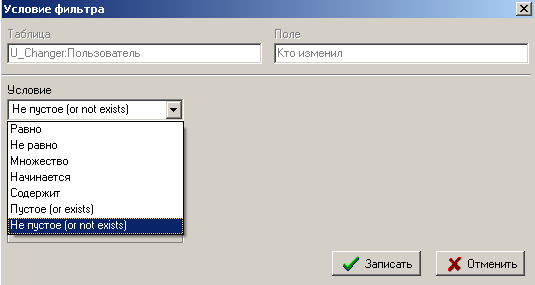 При добавлении условия фитльтрации необходимо выбрать