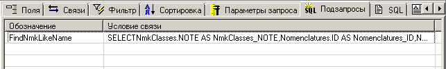 Содержит список используемых подзапросов (наборов