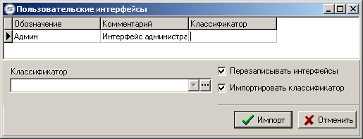 Флаг «Импортировать классификатор» означает, что необходимо создать классификатор из файла импорта, и загрузить интерфейсы в этот классификатор.