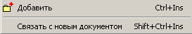 В режиме «Добавить» - система привязывает документ из папок пользователя (см. раздел 11.3), а в режиме «Связать с новым документом» помимо привязки создает документ в архиве подсистемы документооборота как это показано в разделе 11.1.2.