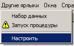Для добавления набора данных или команды пользователя в раздел «Другие ярлыки» необходимо перейти в меню на панели TechnologiCS и, сделав правый клик, вызвать выпадающее меню «Настроить».
