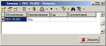 или нажатием соответствующей кнопки на панели управления или выбором в окне редактирования номенклатуры закладки «Замена номенклатуры».