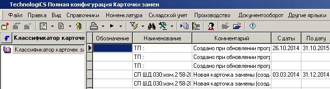 и содержит карточки, в которых регистрируется информация о примененных заменах, объединенных по какому-либо признаку.
