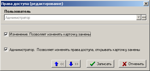 Позволяет изменить права доступа, открывать карточку замены» - позволяет