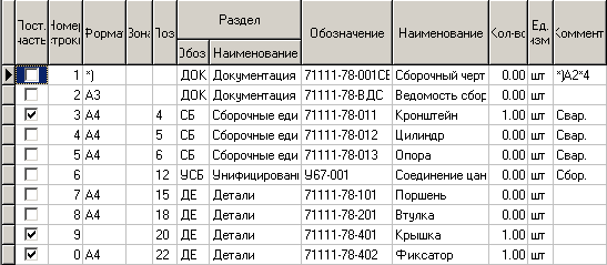 В области редактирования - перечень позиций спецификации.
