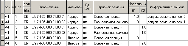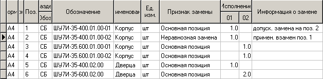 такого механизма конструкторских замен у каждой позиции имеется атрибут «Признак замены».