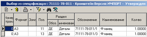 из спецификации, используя кнопку