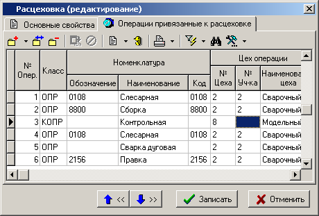 привязанные к расцеховке» ведется перечень операций, который можно