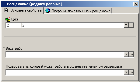 · «Пользователь, который может работать с данным элементом расцеховки» - задается пользователь, который будет работать с операциями, привязанными к данной позиции расцеховки по умолчанию.