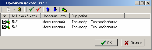 контекстного меню, в появившемся окне можно дополнительно выбрать список цехов.
