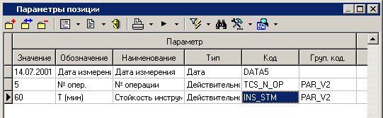 перечнем элементов системы, поддерживающих ведение параметров позиции,