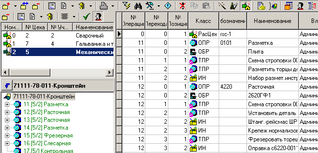 При этом в информационном поле помимо дерева ТП появляется окно расцеховки со своей панелью управления, в котором можно выполнять следующие действия: