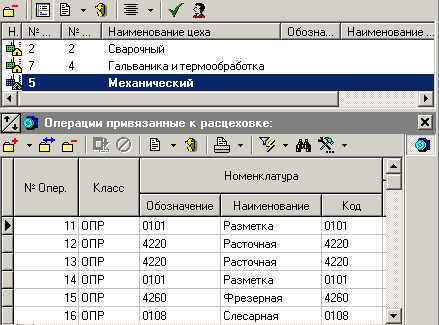 · Можно выбрать в окне расцеховки нужный элемент и с помощью зависимого объекта (см. раздел 1.8) и работать со списком операций, привязанных к расцеховке.