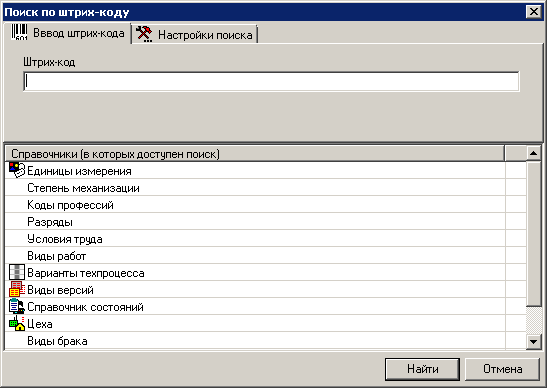 Поиск по штрих-коду выполняется по всем элементам системы поддерживающим штрих-кодирование (см. раздел 15.1.5).