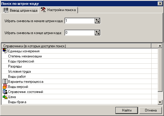 Для настройки поиска (при вводе уникального кода с помощью сканера