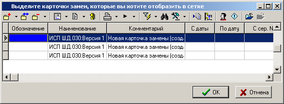 замен по выбранной карточке замен в версии (см. раздел 8.9), выполните команду
