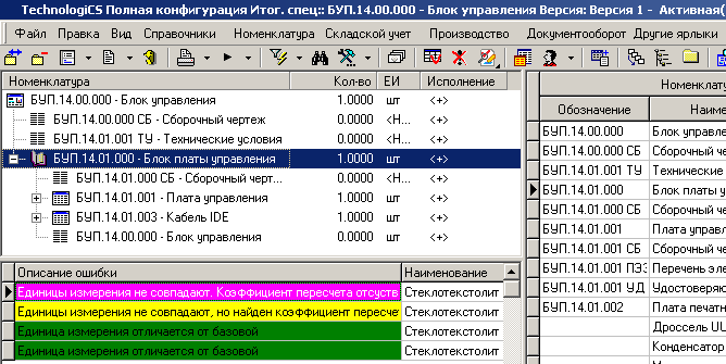 Если при ведении состава изделия были допущены ошибки, они могут повлиять на процесс разузлования, и поэтому при построении итоговой спецификации их необходимо обнаружить и исправить. Как правило, это ошибки следующих видов: