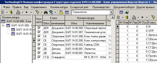 · «Техпроцесс на изделие» - выводится технологический процесс на изделие, для которого открыт данный режим системы (корень дерева).