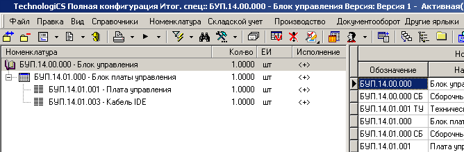 Дерево сборочных единиц отличается от дерева спецификации (см. раздел 8.7.1) тем, что содержит внутри себя только те позиции, которые имеют свои спецификации.