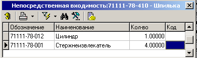 В отдельном окне в виде таблицы выдается информация о применяемости текущей позиции в узлах изделия с указанием количества для каждого вхождения.