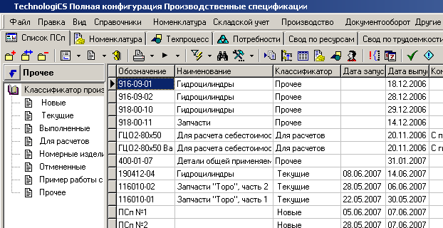 и предназначен для получения различных сводов по списку ПСп, а также расчета циклограмм изготовления. В нем также можно выполнять все операции, допустимые при ведении отдельных ПСп.