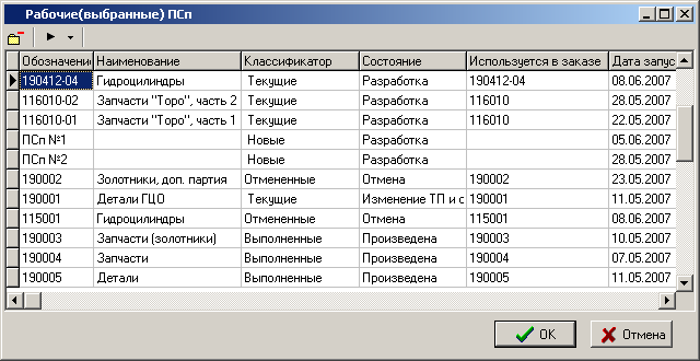 · Команда «Добавить выделенные позиции к рабочим ПСп» позволяет сформировать список ПСп, с которыми в дальнейшем будет проводиться работа.