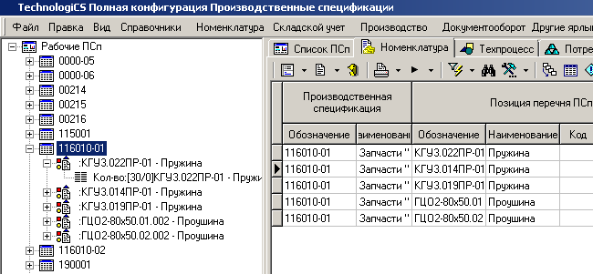 Режим работы с производственными спецификациями вызывается из главного меню