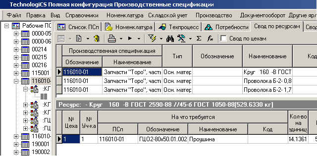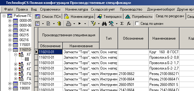 На закладке «Свод по ресурсам» основного режима производится свод по всем ресурсам, необходимым для производства ПСп. Следует заметить, что итоговые цифры по ресурсам рассчитываются по отдельной ПСп.