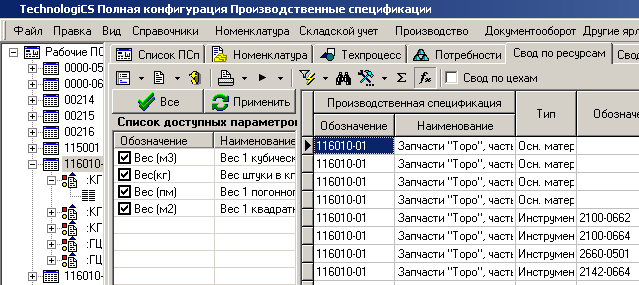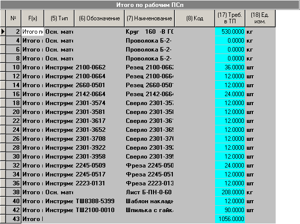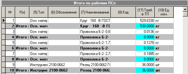 · «Всего» - суммарное количество ресурса по текущей операции для изготовления общего количества номенклатуры по ПСп.