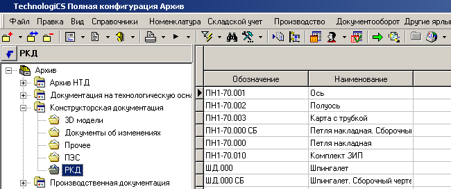В области редактирования - документы, относящиеся к архиву или разделу архива. Отображаются следующие колонки: