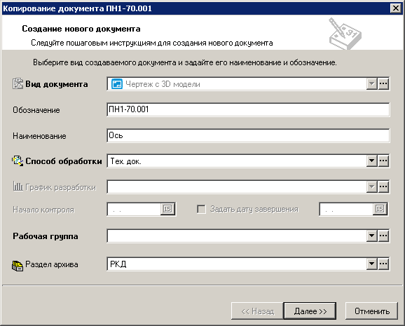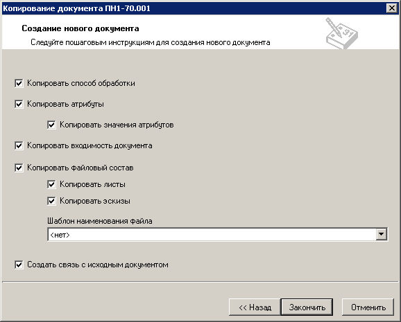 · «Копировать листы» - при установленном флаге, листы активной версии текущего документа будут скопированы в создаваемый документ.