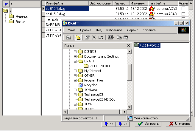 На рисунке приведен пример, когда в проводнике выделены каталог 71111-78-011, и файлы, находящиеся в нем (включая подкаталоги), методом перетаскивания в окно файлового состава добавляются к документу. Те же манипуляции можно производить и с отдельными файлами.