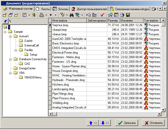 Ниже приведен пример файлового состава при добавлении к документу всего каталога Sample AutoCAD.