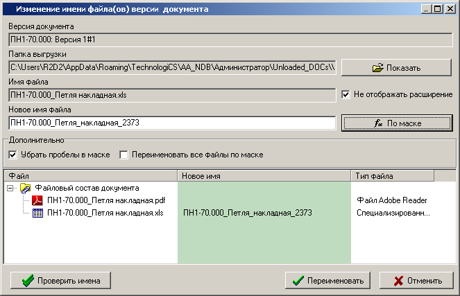 · «Новое имя файла» - имя файла сгенерированное по маске,