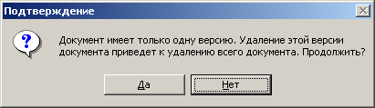 Удаление отдельных версий документа производится в режиме работы с версиями документа (см. раздел 12.1.11).