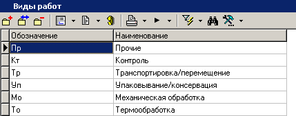 Справочник используется при проектировании технологических процессов, ведении производственных мощностей и т.д. Необходим для получения сводной информации по видам работ.