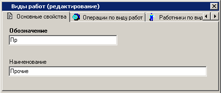 просмотра/редактирования вида работ содержит дополнительные закладки: |