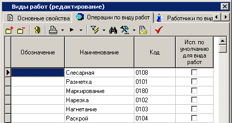 и содержит данные об имеющемся на предприятии разбиении производственных процессов по видам работ (сборка, гальваника, механообработка и т.п.).