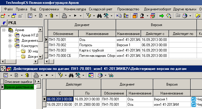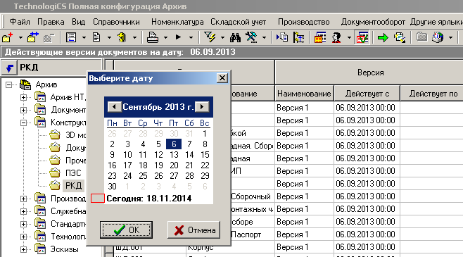 имеется возможность отображать и работать только с теми документами, версии которых действуют на заданную дату.
