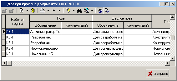 предназначен для работы с правами доступа к документу на уровне рабочих групп.