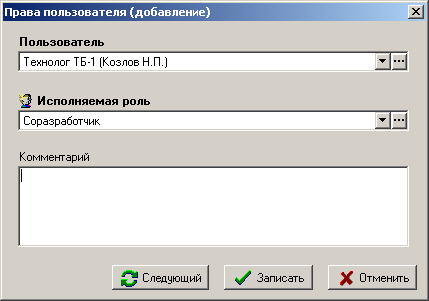 · «Исполняемая роль» - задается роль и соответственно шаблон прав доступа к документу.
