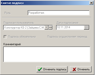 «Отменить подпись»