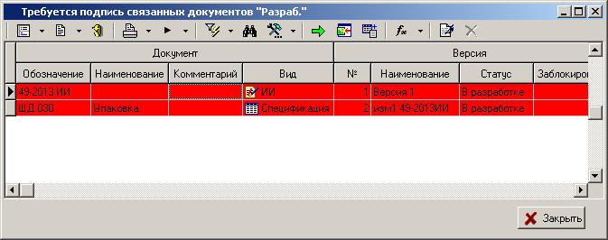 Список версий связанных документов формируется на основании настроек действий «Проверить подписи связанных документов» и «Проверить подписи головных документов» (см. раздел 2.7.9.1.2). |
