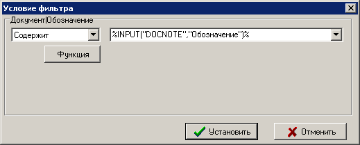 Также в качестве условия фильтрации возможно использование определенных функций, которые вызываются нажатием кнопки «Функция».