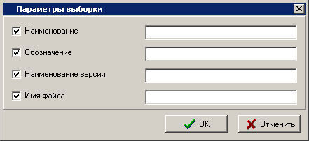 В данном диалоговом окне, для исключения из выборки поиска по требуемому параметру, необходимо снять флаг у соответствующего параметра.