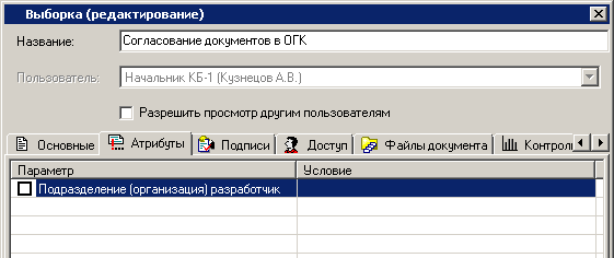 | 12.4.1.2 Задание условий по атрибутам документа |