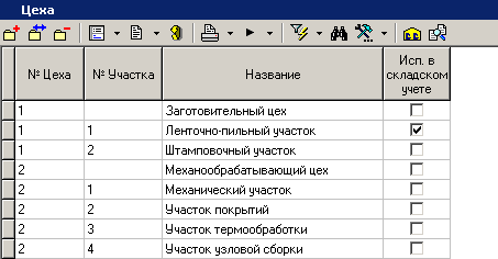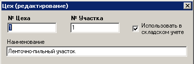 · Флаг «Использовать в складском учете» - устанавливается для цеха/участка участвующего в подсистеме складского учета (см. раздел 11).
