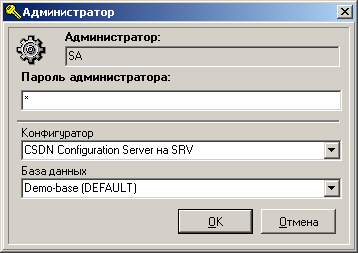 После запуска системы администрирования, появляется диалоговое окно следующего вида: